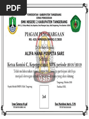Contoh Sertifikat Resmi Mpk Dan Osis Pdf